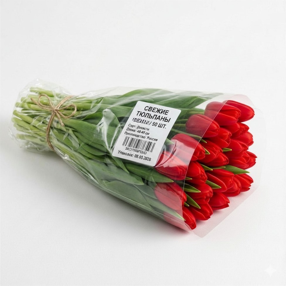 Тюльпаны поставляются в заводской упаковке напрямую от производителя. Отсутствие лишних этапов логистики и обработки позволяет установить привлекательную цену: вы платите только за качественный живой товар.