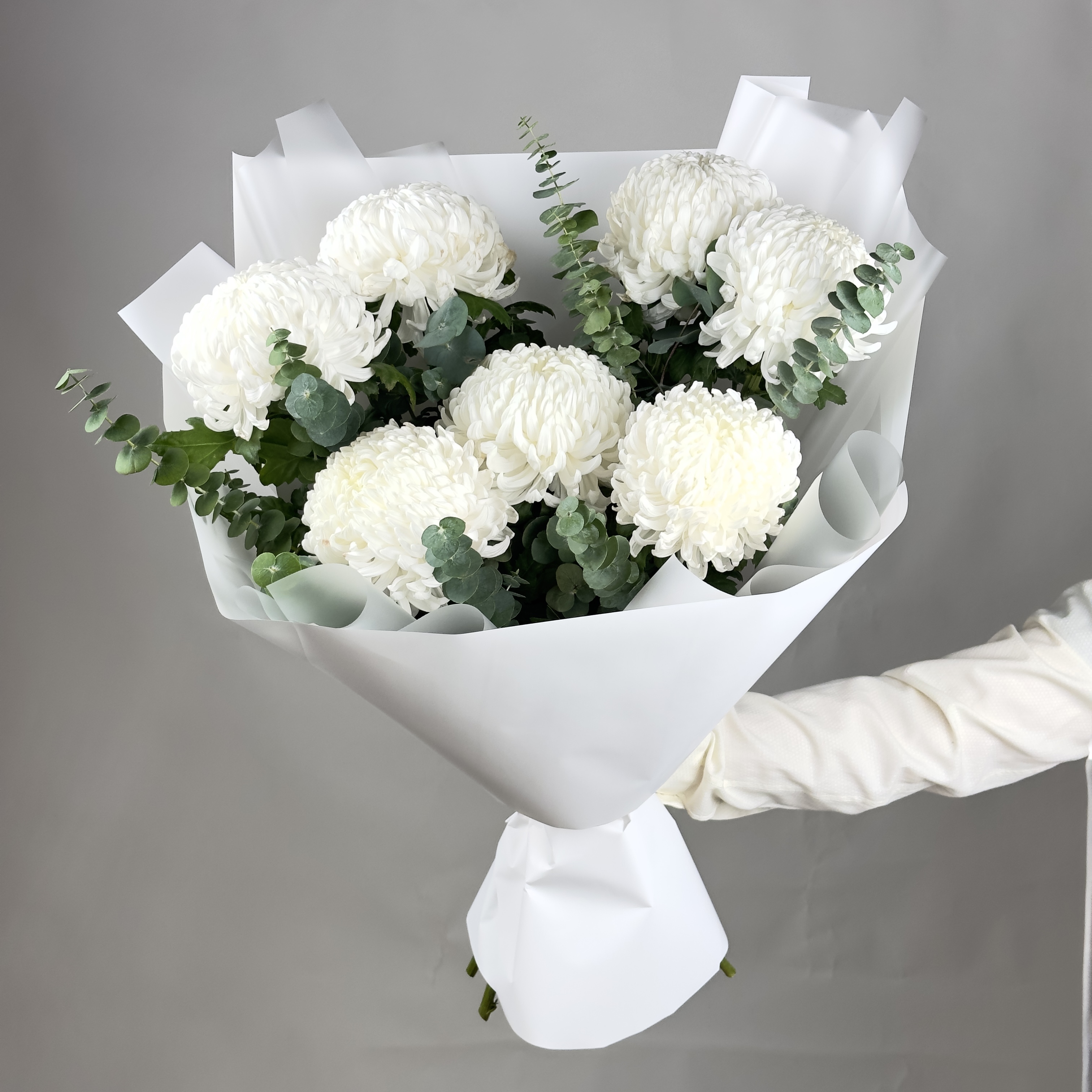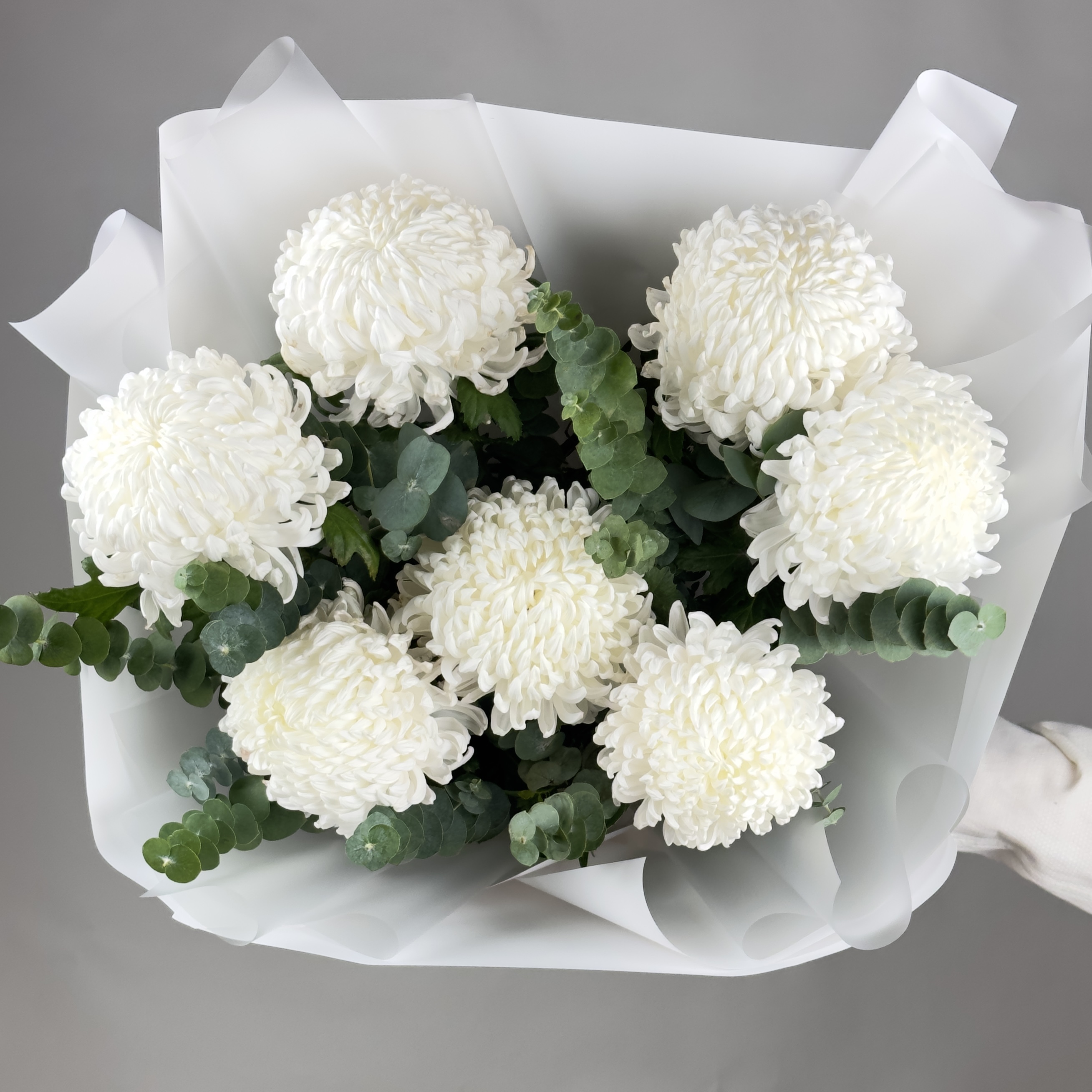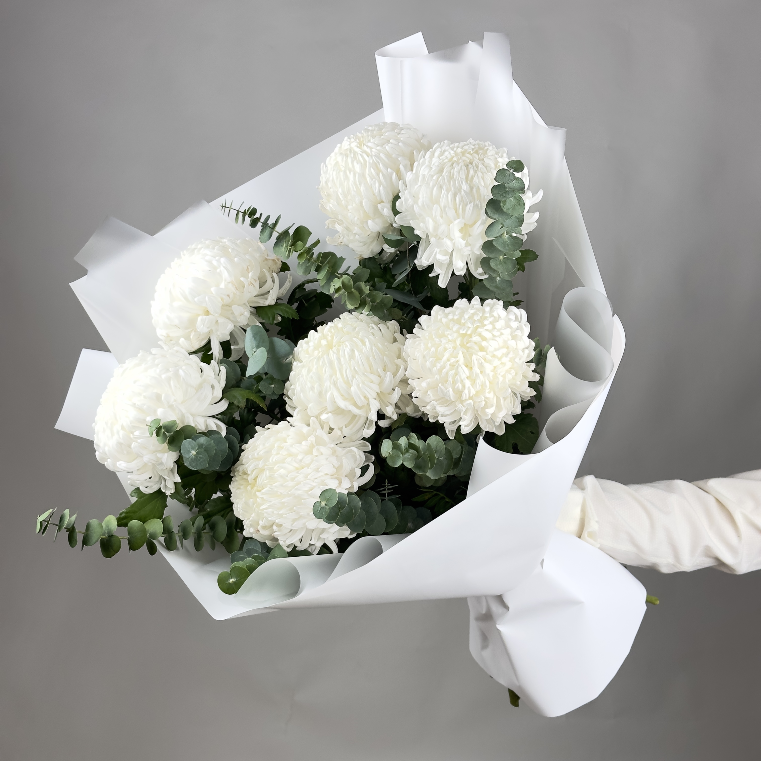 Изящный букет из 7 белоснежных хризантем Бигуди с эвкалиптом - это воплощение нежности и красоты. Подарите своим близким возможность насладиться очарованием этих чудесных цветов, символизирующих искренность и чистоту чувств. В окружении городской суеты такой букет станет прекрасным напоминанием о природе и непреходящей ценности простых радостей жизни. Не отказывайте себе и своим любимым в удовольствии созерцать эту восхитительную композицию!