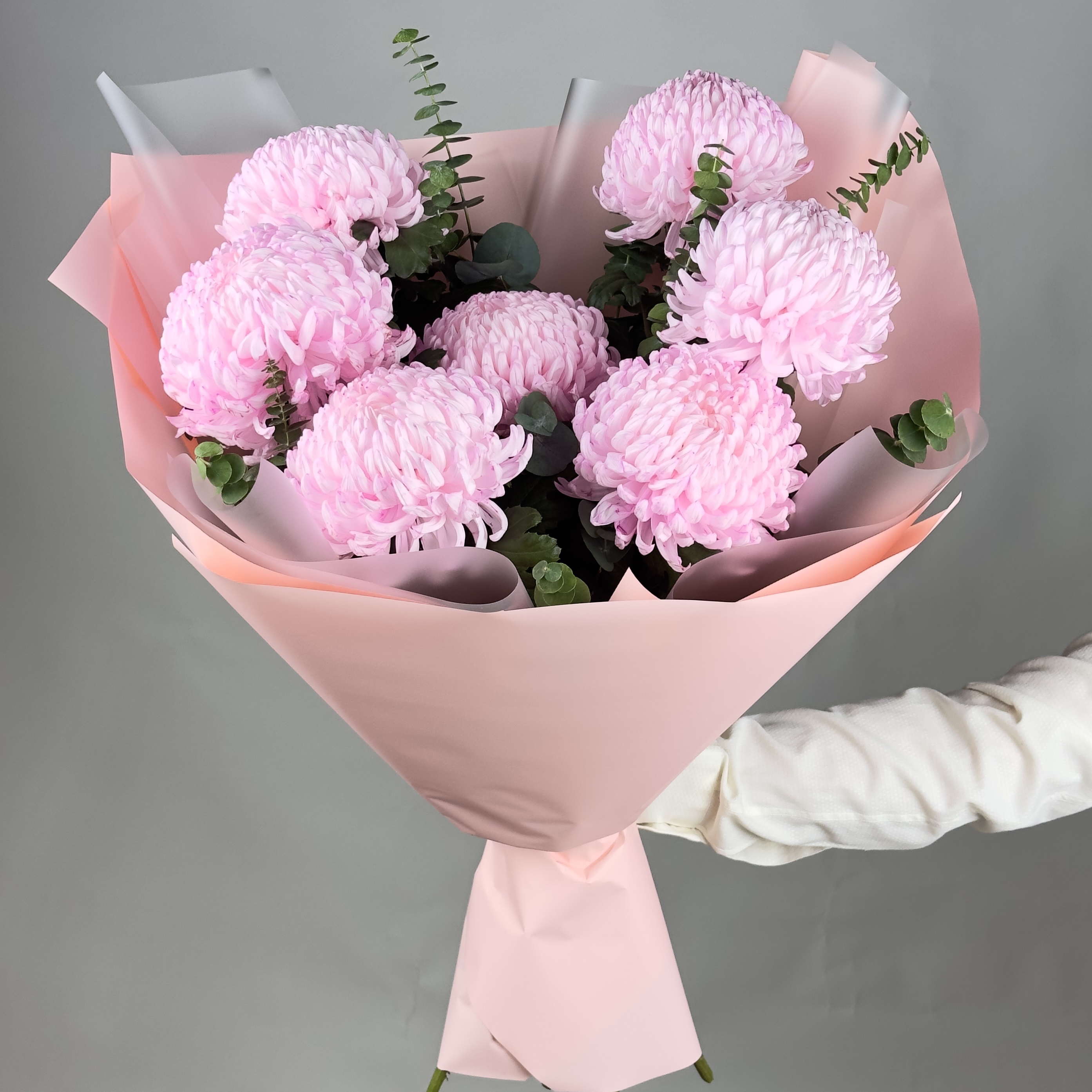 Топ-100 Букет цветов из 7 розовых одноголовых хризантем Бигуди – купить за 6 000 ₽ | Мосцветок | Сеть цветочных магазинов с доставкой